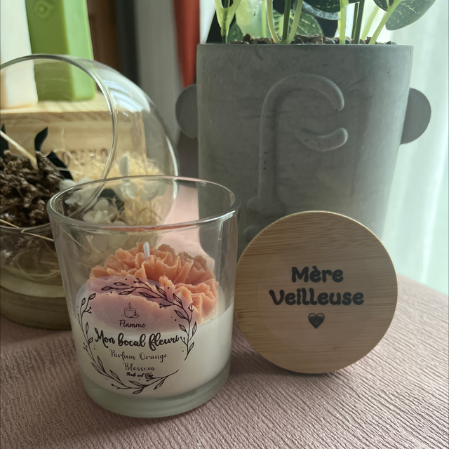 Bougie mon bocal fleuri - Œillet terracotta